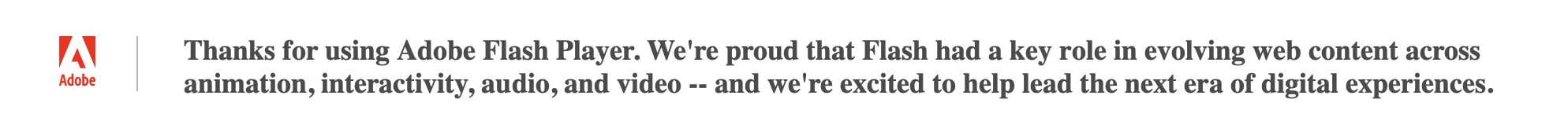 On 1 January 2021, Adobe Flash was discontinued. In fact, Adobe went so far as to say that: