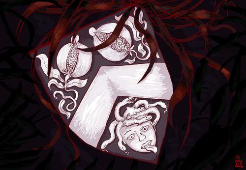 Part of a Secret Santa I did. The original image I did contains some artistic nudity, so it's been cropped so it can be shared online. The armiger chose to depict her melusine with many breasts as a reference to Ephesian Artemis.