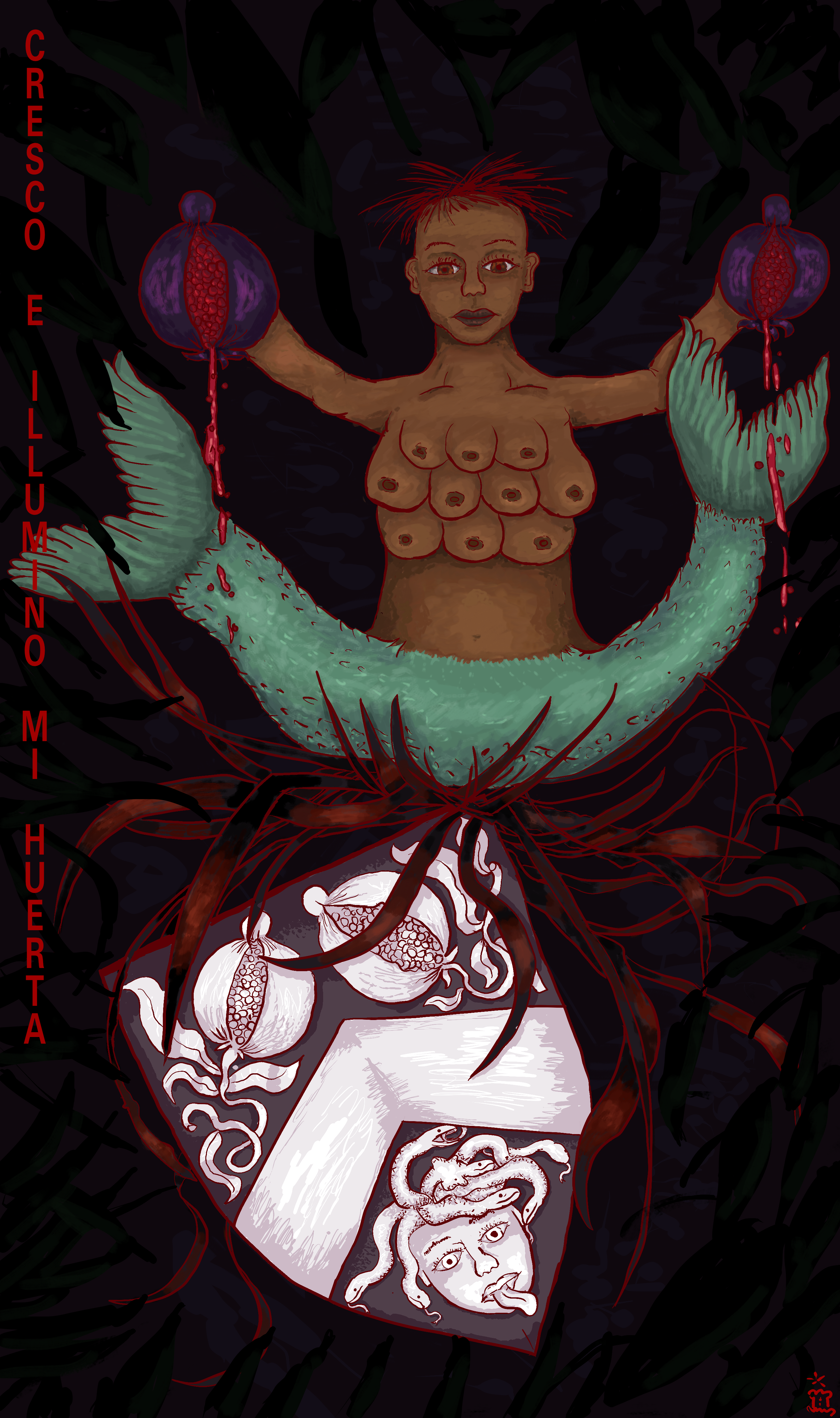 Part of a Secret Santa I did. The original image I did contains some artistic nudity, so it's been cropped so it can be shared online. The armiger chose to depict her melusine with many breasts as a reference to Ephesian Artemis.