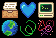 Some icons from the homepage of an old version of my website. The heart was dropped for the final version, leaving only five icons.
